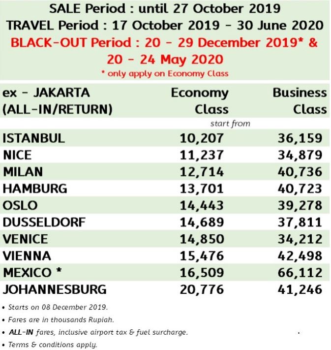 WINTER SPECIAL FARES (SALE UNTIL 27 OCTOBER 2019)